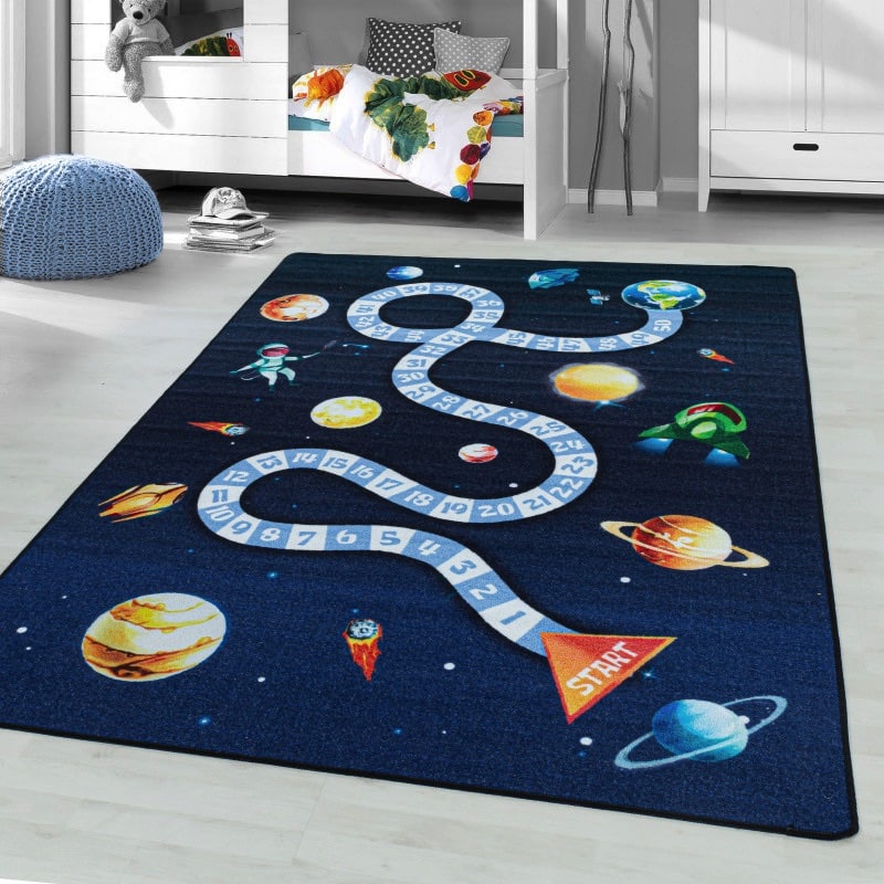 Blåt Astronaut Børne Gulvtæppe med Tal fra Rugs by Uniquebeds Home & Living | Flere Størrelser