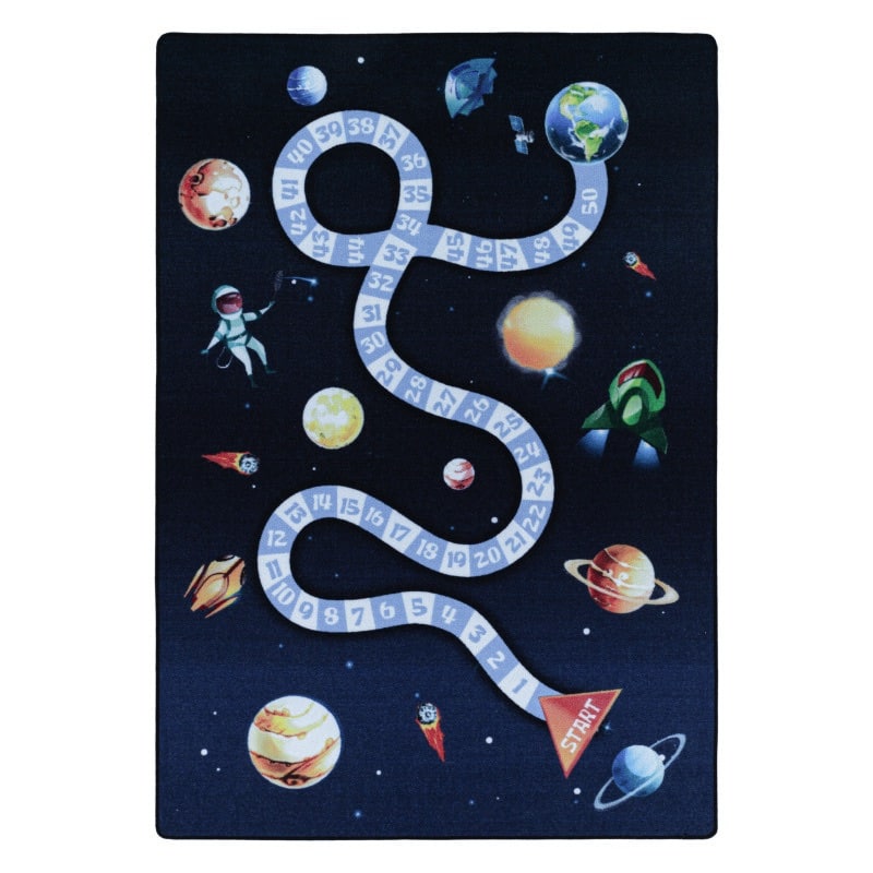 Det blå astronaut børnetæppe med tal er et sjovt og lærerigt gulvtæppe, der inviterer børn til at hjælpe astronauten hjem fra rummet ved at følge tallene fra 1 til 50. Tæppet kombinerer leg med læring på en kreativ måde og stimulerer børns talforståelse og motoriske færdigheder. Det spændende rumtema vækker fantasien og giver et eventyrligt præg til børneværelset.
