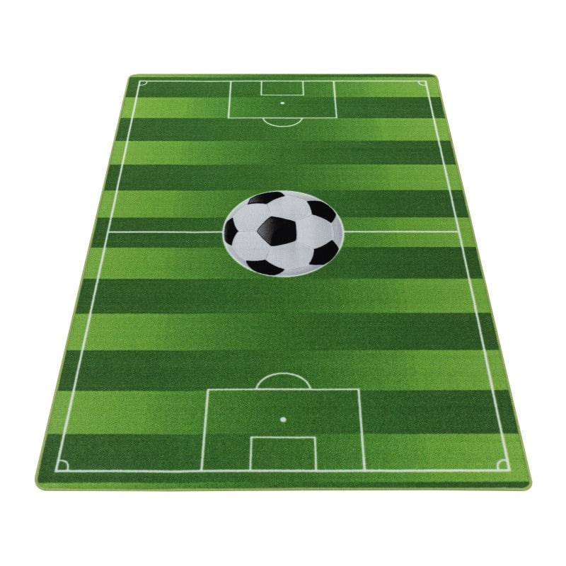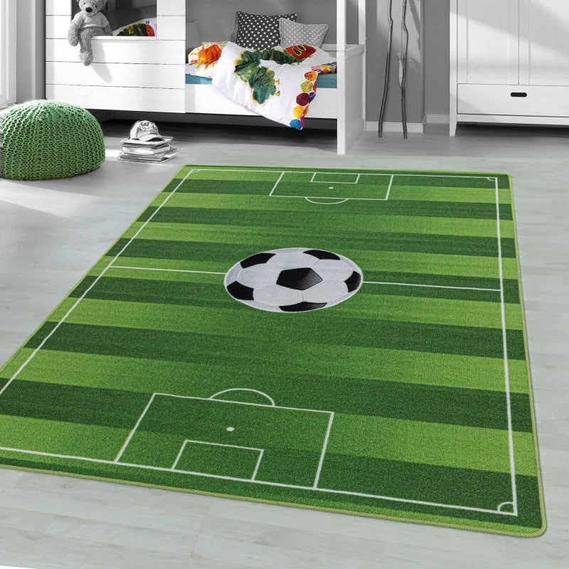 Tæppet fås i flere størrelser: 80×120, 100×150, 120×170, 140×200 og 160×230 cm, så det passer til både små og større børneværelser. Det grønne fodboldbane børnetæppe kombinerer funktionalitet med et inspirerende design, som gør det til en populær tilføjelse i hjem med aktive børn.
