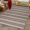 Aurora Indendørs/Udendørs Gulvtæppe i Beige med Stribet Mønster fra Rugs by Uniquebeds Home & Living | Flere Størrelser