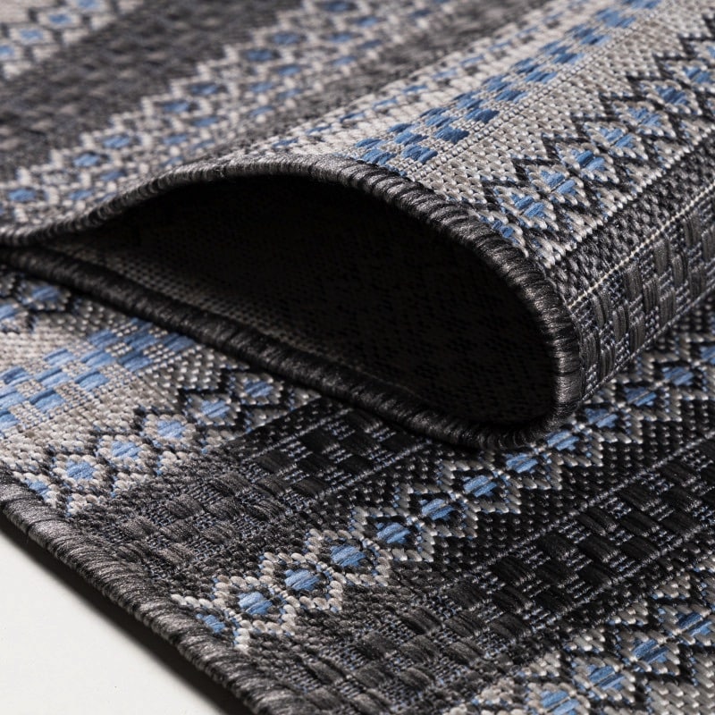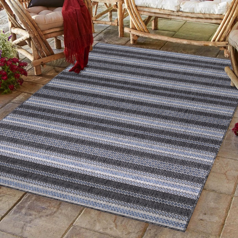 Aurora Indendørs/Udendørs Gulvtæppe i Sort med Stribet Mønster fra Rugs by Uniquebeds Home & Living | Flere Størrelser