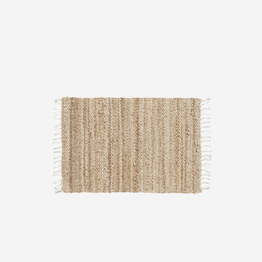 AVA gulvtæppe fra Nordal er et smukt og rustikt tæppe fremstillet i naturlig hamp med et enkelt stribet mønster. De lyse naturfarver og det rå udtryk giver tæppet en autentisk og jordnær karakter, som passer perfekt ind i en nordisk og naturlig indretning.