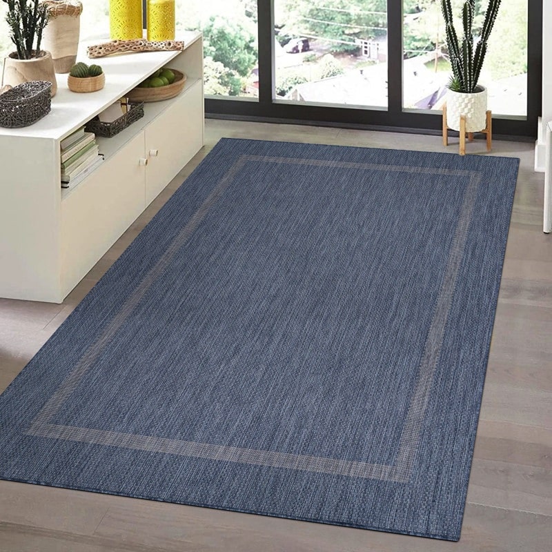Bella Indendørs/Udendørs Gulvtæppe i Blå med Simpel Kant fra Rugs by Uniquebeds, Home & Living | Flere Størrelser i Firkantet & Rund