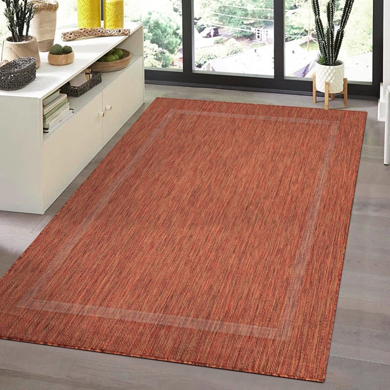 Bella Indendørs/Udendørs Gulvtæppe i Rød med Simpel Kant fra Rugs by Uniquebeds, Home & Living | Flere Størrelser i Firkantet & Rund