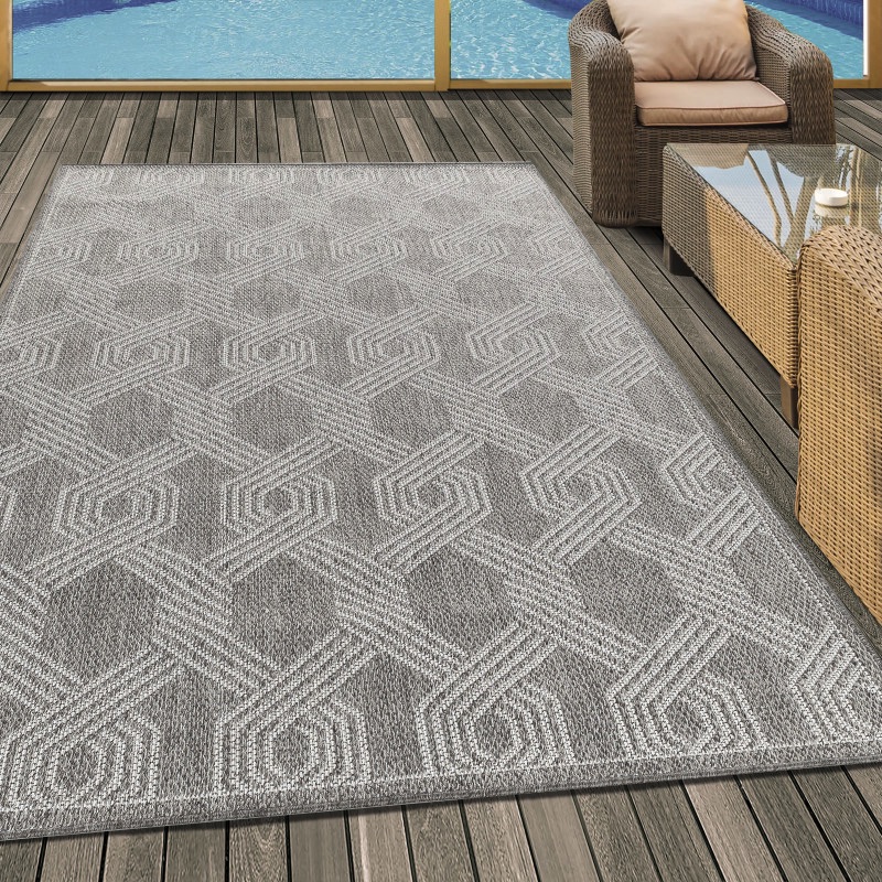 Cathrine Indendørs/Udendørs Gulvtæppe i Grå med Flettet Mønster fra Rugs by Uniquebeds Home & Living | Flere Størrelser
