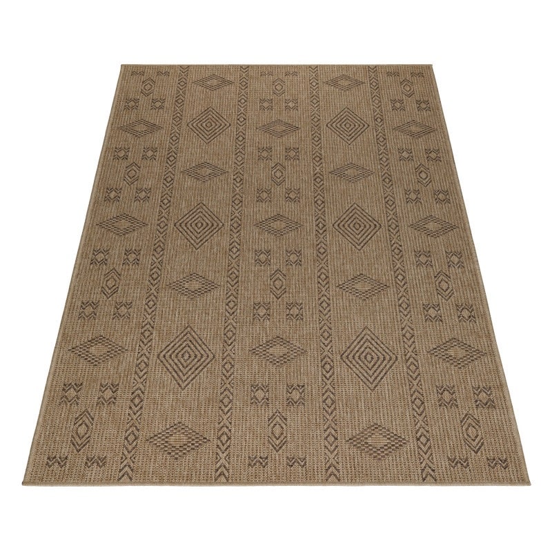 Chloe gulvtæppet i beige med sort mønster er et stilfuldt og alsidigt valg til både indendørs og udendørs brug. Det enkle, stribede design med små figurer mellem striberne giver tæppet et naturligt, men samtidig dekorativt udtryk, som passer perfekt til både moderne og klassiske indretninger. Det neutrale farvespil mellem beige og sort gør gulvtæppet nemt at kombinere med forskellige møbler og farver.