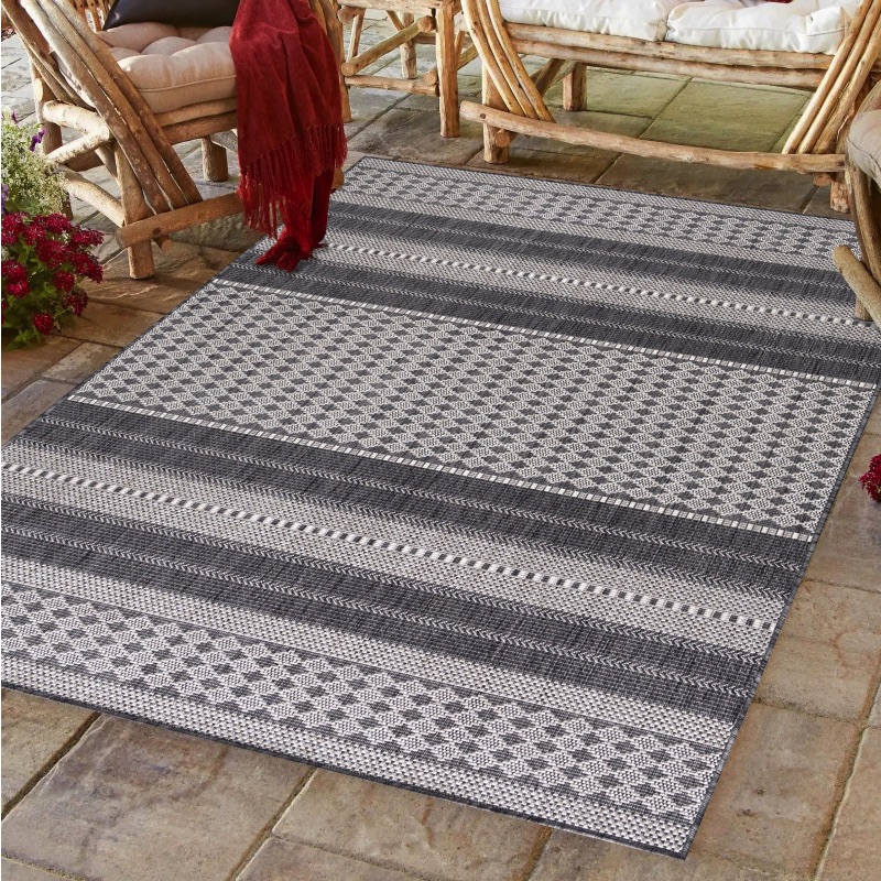 Dette designer udendørs gulvtæppe kombinerer æstetik, funktionalitet og holdbarhed og er ideelt for dem, der ønsker et fleksibelt gulvtæppe til både inde- og udendørs brug. Eliza gulvtæppet løfter ethvert rum eller udendørsområde med et moderne og indbydende udtryk.