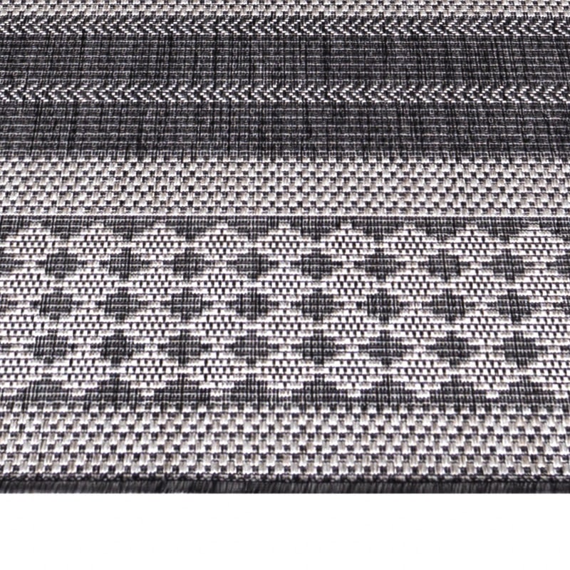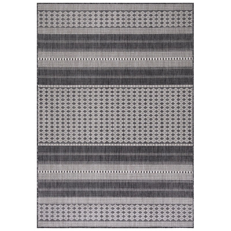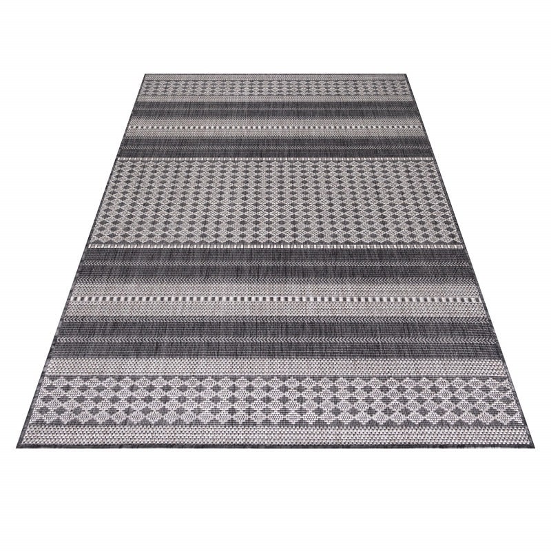 Eliza gulvtæppet i beige og grå med striber og små mønstre er et stilfuldt og praktisk valg til både indendørs rum og udendørs områder som terrasser eller altaner. De diskrete striber kombineret med simple mønstre skaber et moderne og elegant udtryk, som passer til både klassiske og moderne indretninger.