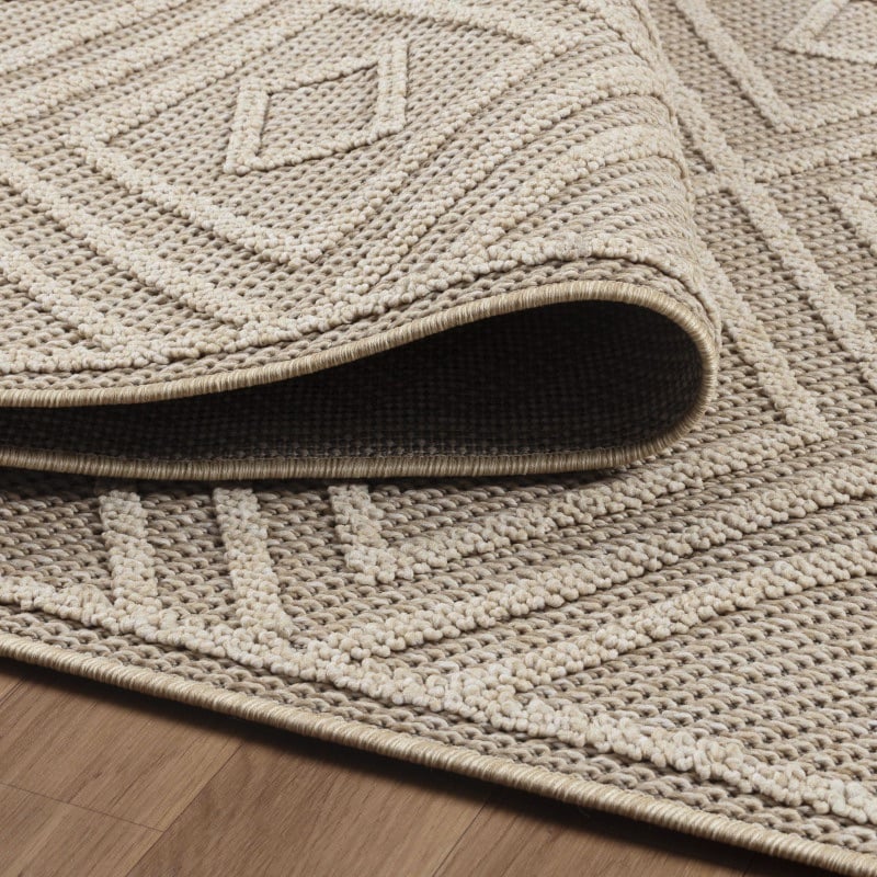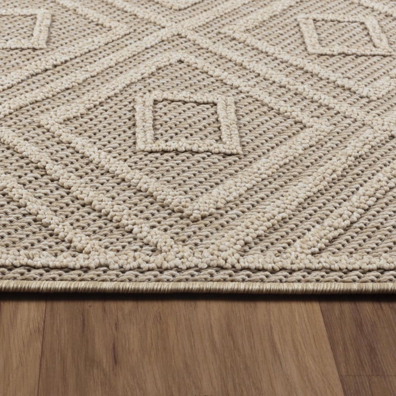 Ellie Indendørs/Udendørs Gulvtæppe i Beige med Simpelt Diamantgitter Mønster fra Rugs by Uniquebeds Home & Living | Flere Størrelser