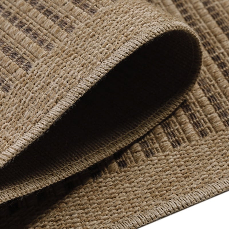 Harriet Indendørs/Udendørs Gulvtæppe i Beige & Sorte Striber med Simpelt Kant fra Rugs by Uniquebeds Home & Living | Flere Størrelser
