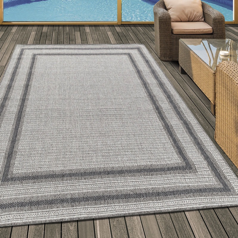 Hazel Indendørs/Udendørs Gulvtæppe i Creme med Simpel Grå Kant fra Rugs by Uniquebeds Home & Living | Flere Størrelser
