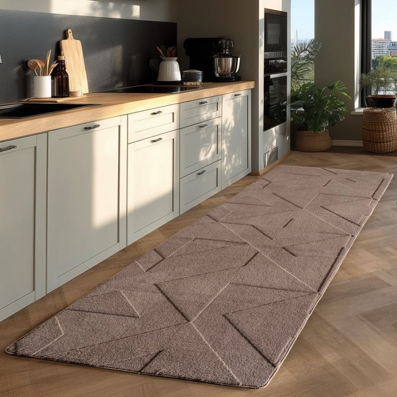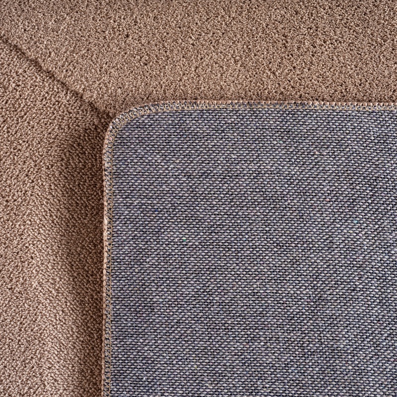 Tæppet er fremstillet af 100 % mikrofiber og maskinvævet med en luvhøjde på 12 mm, hvilket sikrer en blød overflade, der føles behagelig under fødderne, samtidig med at det er slidstærkt og holdbart. Den naturlige bomuldsbagside giver ekstra stabilitet, så tæppet ligger sikkert på gulvet uden at glide.