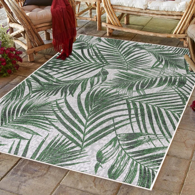 Layla Indendørs/Udendørs Gulvtæppe i Beige med Mønster af Palmeblade fra Rugs by Uniquebeds Home & Living | Flere Størrelser