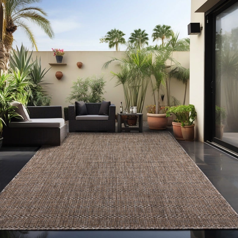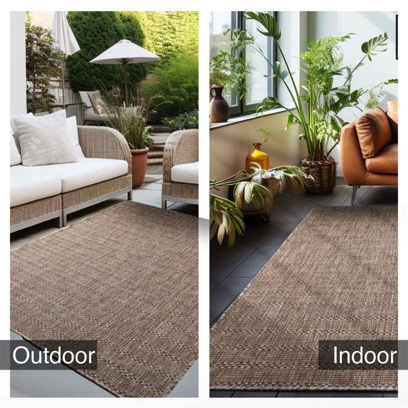 Lottie Indendørs/Udendørs Gulvtæppe i Beige med Simple Striber fra Rugs by Uniquebeds Home & Living | Flere Størrelser