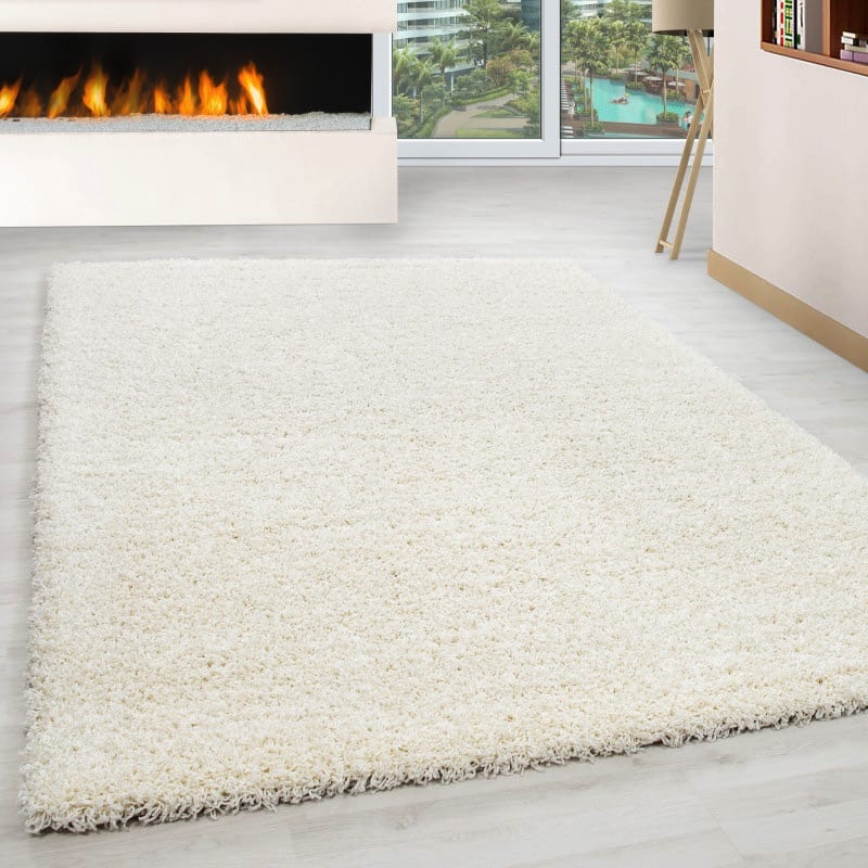 Luna Ensfarvet Fluffy Gulvtæppe i Creme fra Rugs by Uniquebeds Home & Living | Flere Størrelser i Firkantet & Rund