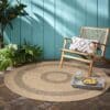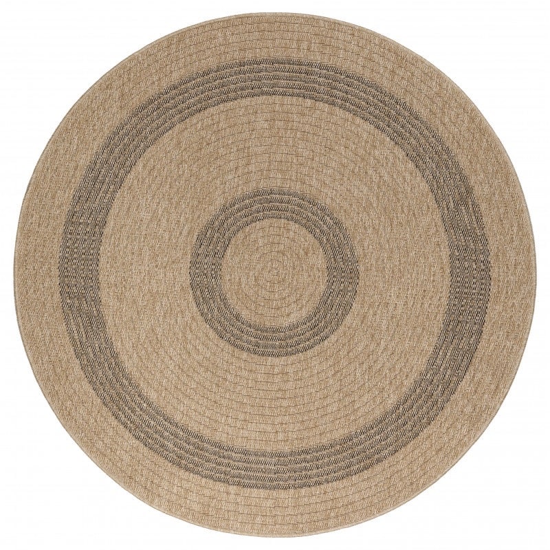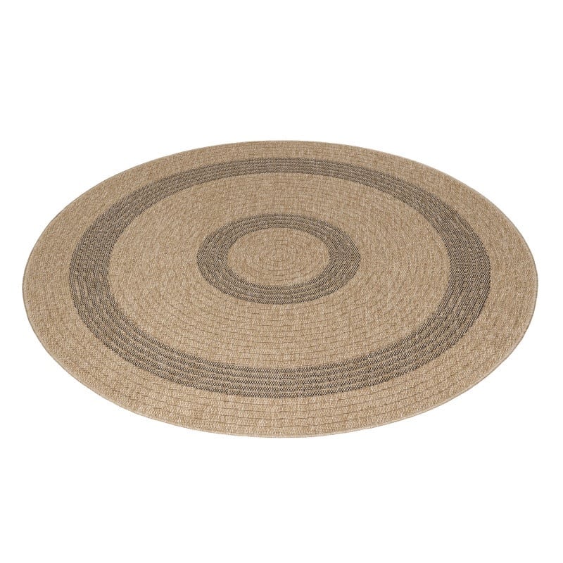 Maria Rundt Indendørs/Udendørs Gulvtæppe i Beige med Simple Mørke Ringe fra Rugs by Uniquebeds Home & Living | Flere Størrelser