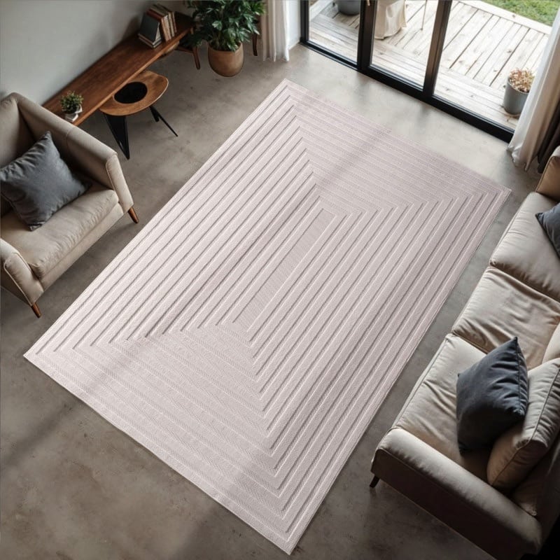 Maya Cremefarvet Gulvtæppe med Simpelt Rektangel Mønster fra Rugs by Uniquebeds Home & Living | Flere Størrelser