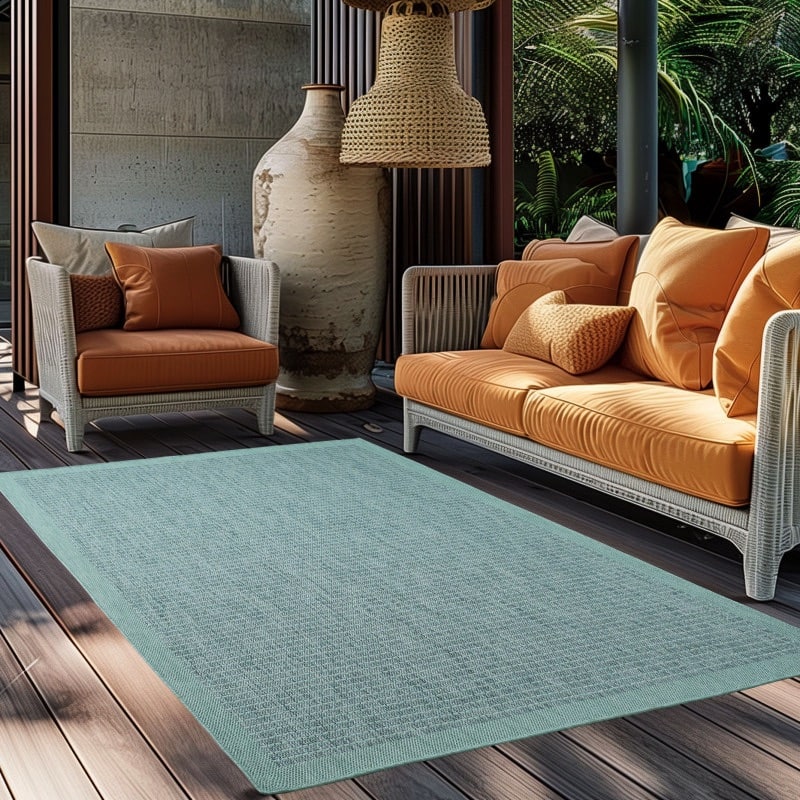 Mila Gulvtæppe i Blå med Simpel Kant fra Rugs by Uniquebeds Home & Living | Flere Størrelser i Firkantet & Rund i Firkantet & Rund