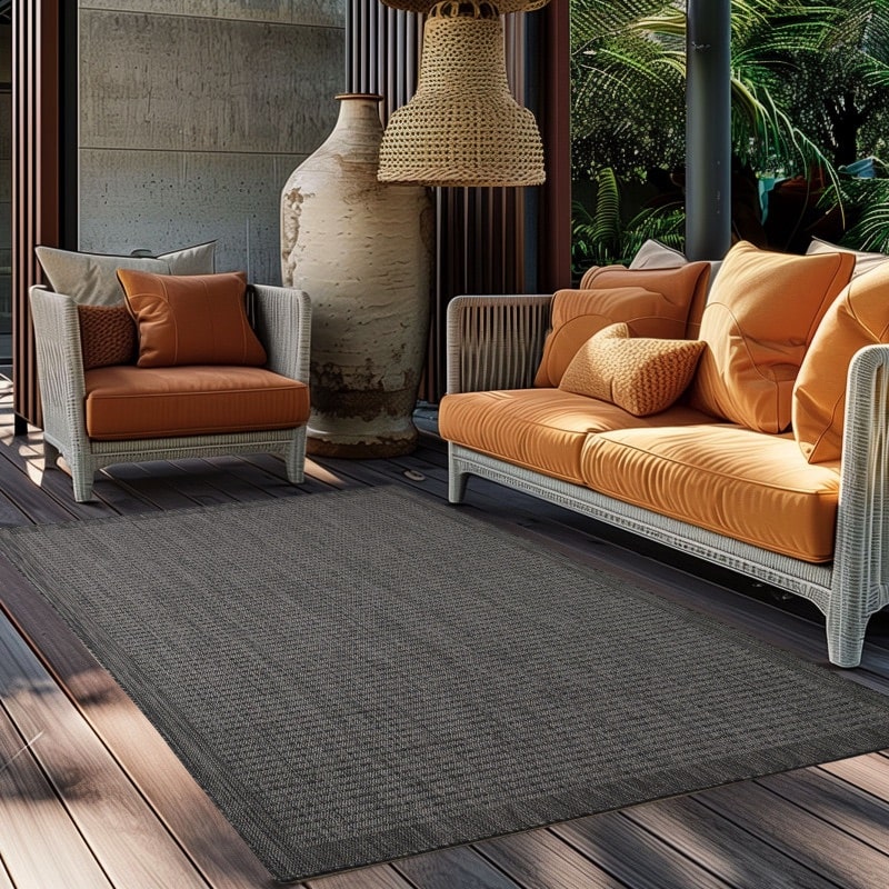 Mila Gulvtæppe i Sort med Simpel Kant fra Rugs by Uniquebeds Home & Living | Flere Størrelser i Firkantet & Rund