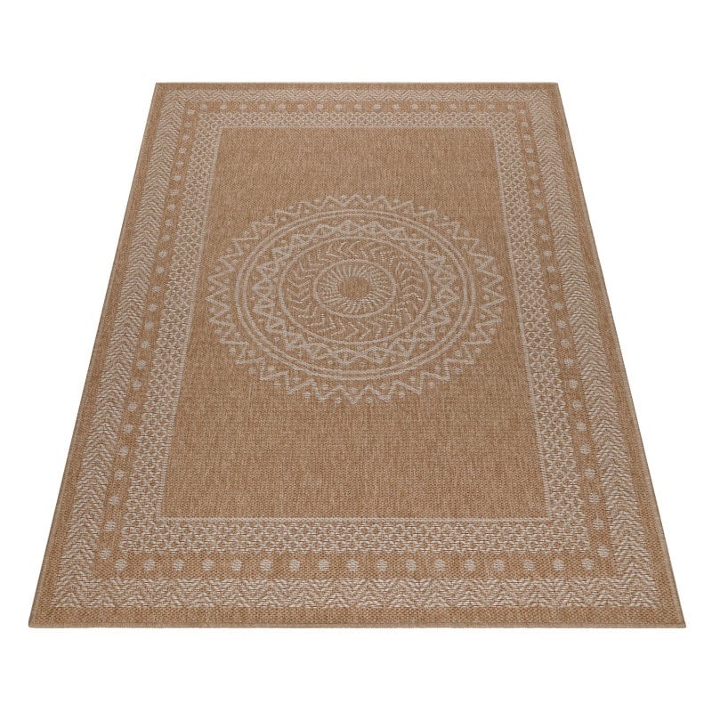 Nancy Indendørs/Udendørs Gulvtæppe i Beige med Simpelt Mandala Mønster fra Rugs by Uniquebeds Home & Living | Flere Størrelser