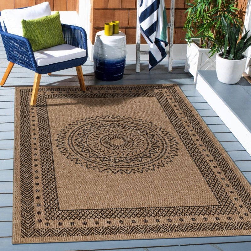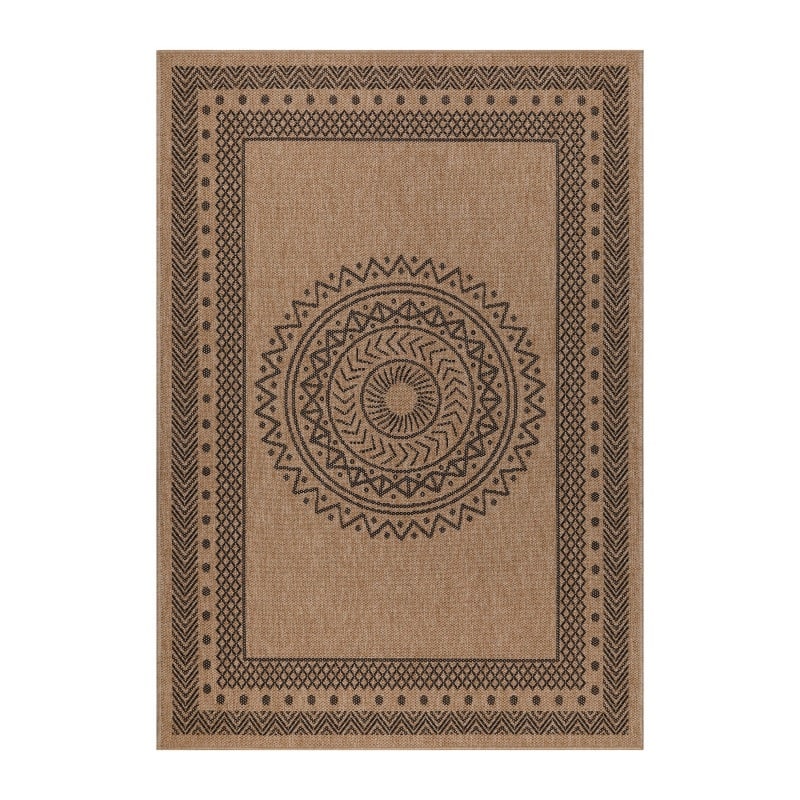 Nancy Indendørs/Udendørs Gulvtæppe i Beige & Sort med Simpelt Mandala Mønster fra Rugs by Uniquebeds Home & Living | Flere Størrelser