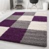Nora Fluffy Ternet Gulvtæppe i Lilla fra Rugs by Uniquebeds Home & Living | Flere Størrelser