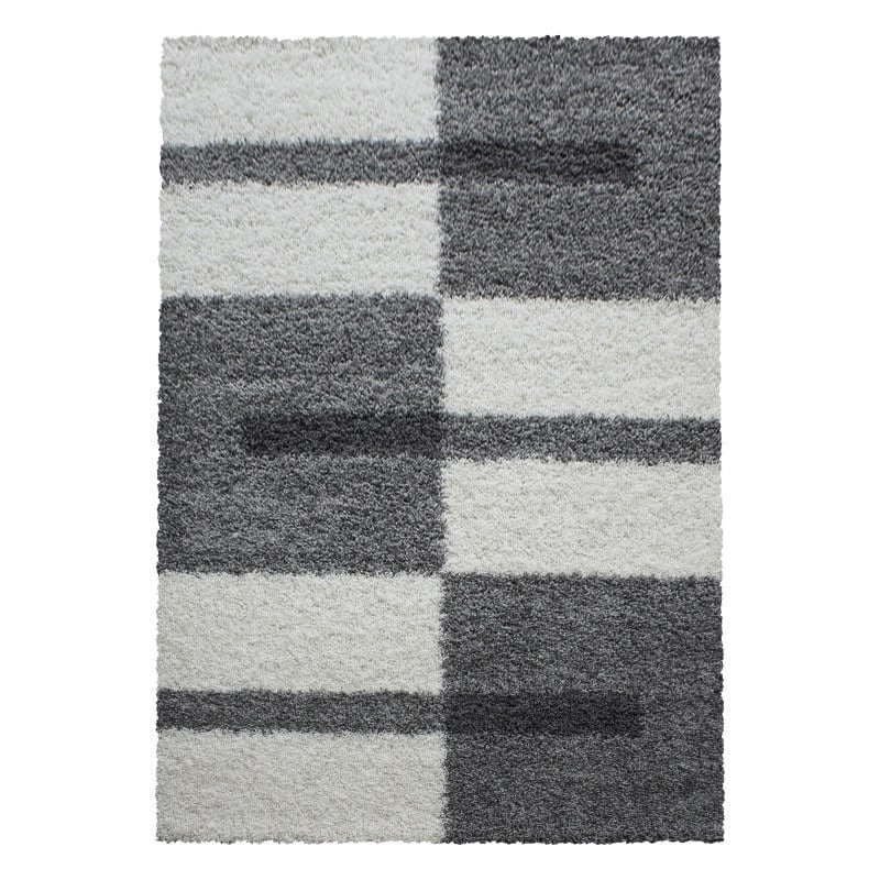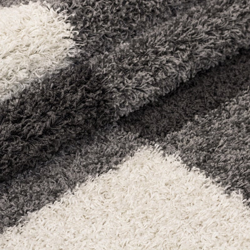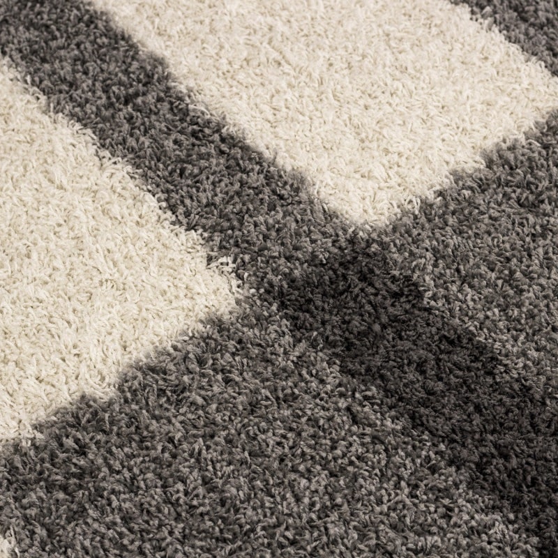 Riley Gulvtæppe i Beige & Grå med Mønster af Blokke & Mørkegrå Striber fra Rugs by Uniquebeds Home & Living | Flere Størrelser i Firkantet & Rund