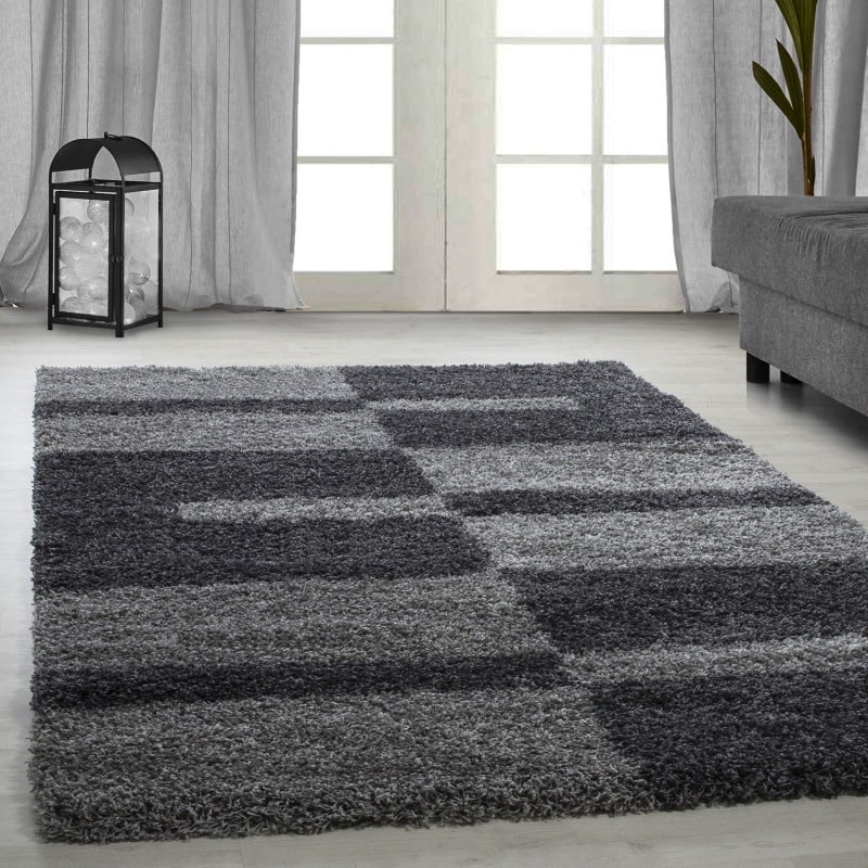 Riley Gulvtæppe i Mørk Grå med Mønster af Blokke & Striber fra Rugs by Uniquebeds Home & Living | Flere Størrelser i Firkantet & Rund