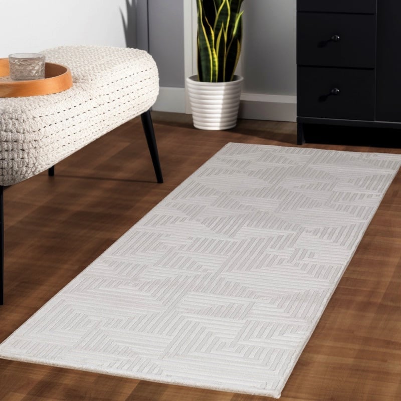 Ruby Cremefarvet Gulvtæppe med Simpelt Kantet Mønster fra Rugs by Uniquebeds Home & Living | Flere Størrelser
