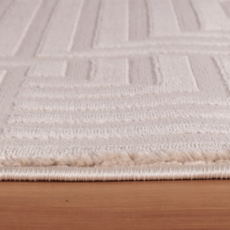 Ruby Gulvtæppe i Beige med Simpelt Kantet Mønster fra Rugs by Uniquebeds Home & Living | Flere Størrelser
