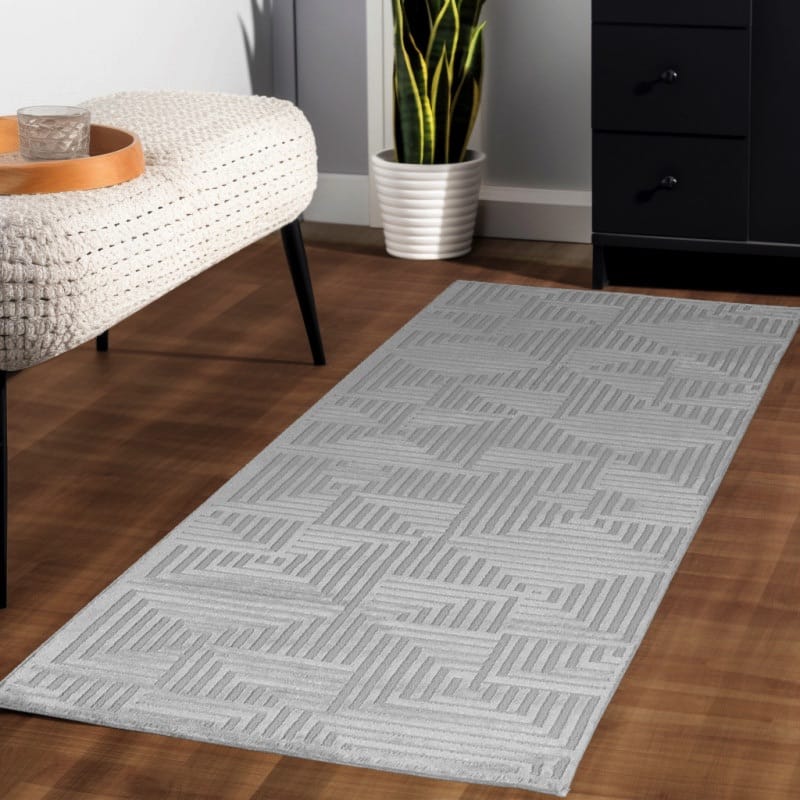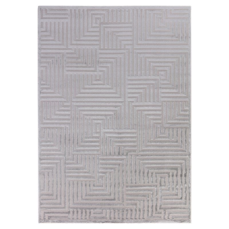 Ruby Gulvtæppe i Sølvgrå med Simpelt Kantet Mønster fra Rugs by Uniquebeds Home & Living | Flere Størrelser