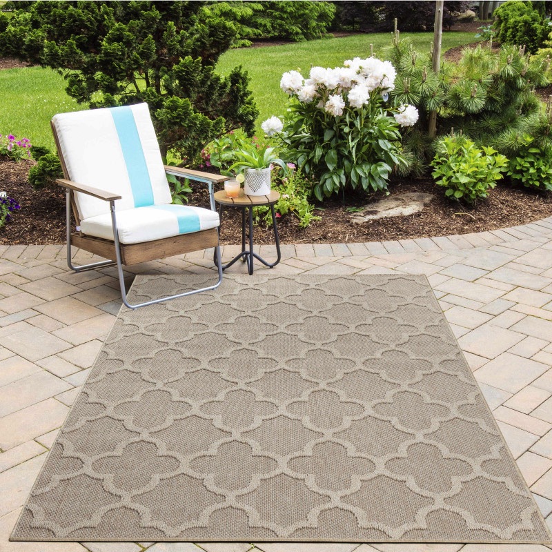 Scarlett Indendørs/Udendørs Gulvtæppe i Beige med Simpelt Quatrefoil Mønster fra Rugs by Uniquebeds Home & Living | Flere Størrelser