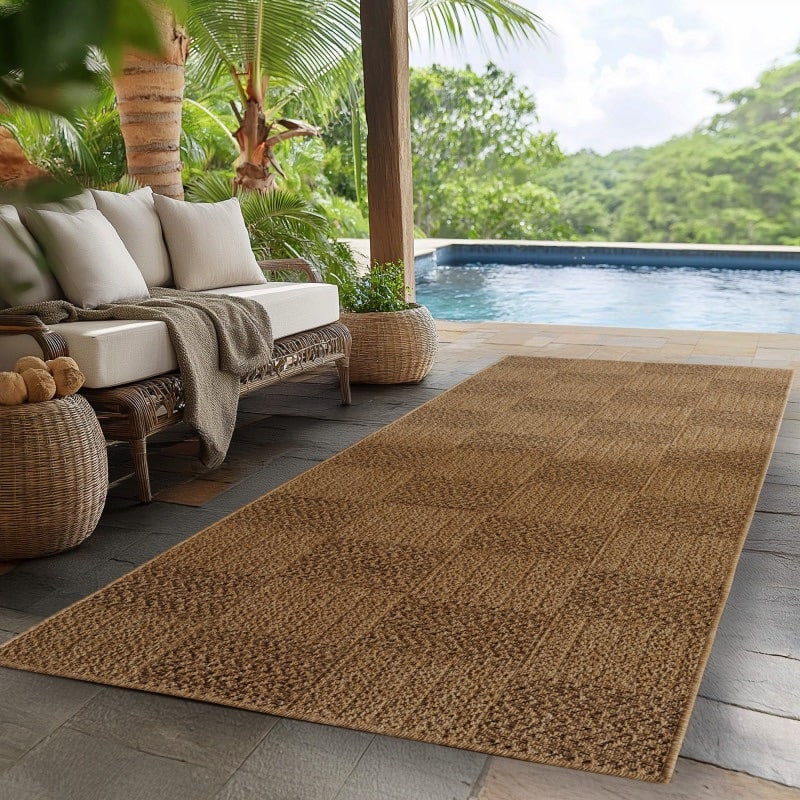 Sienna Indendørs/Udendørs Ternet Gulvtæppe i Beige fra Rugs by Uniquebeds Home & Living | Flere Størrelser