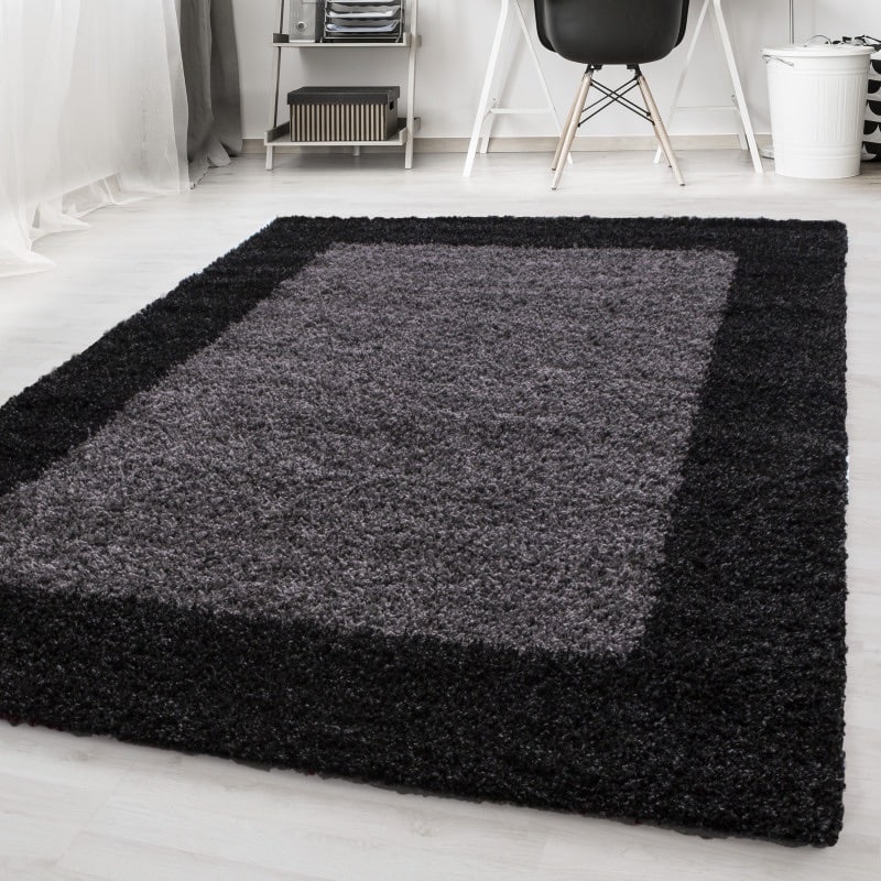 Zoe Fluffy Gulvtæppe i Sort med Kant fra Rugs by Uniquebeds Home & Living | Flere Størrelser i Firkantet & Rund