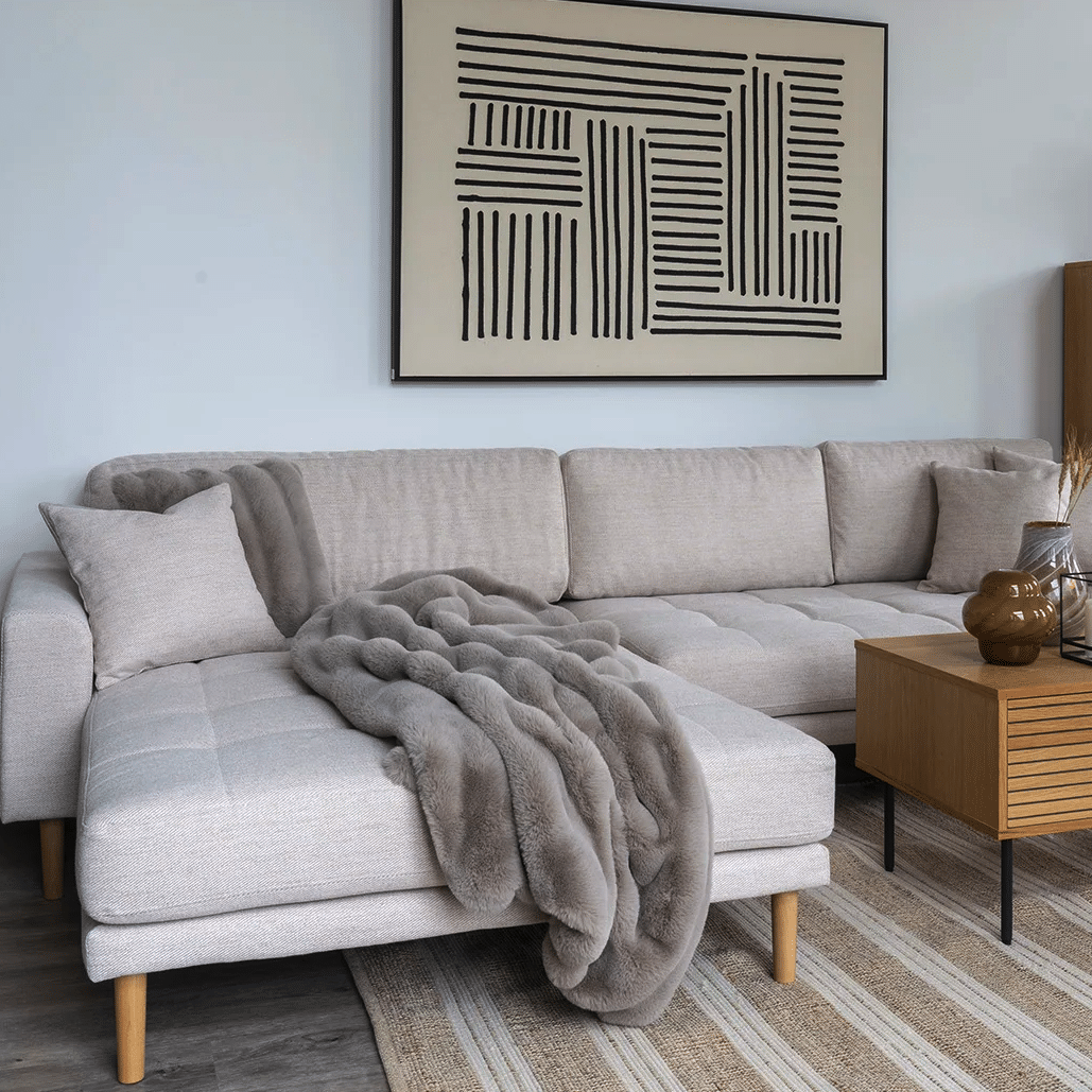 Galena Plaid i Beige imiteret pels Fra House Nordic | 130×180 cm