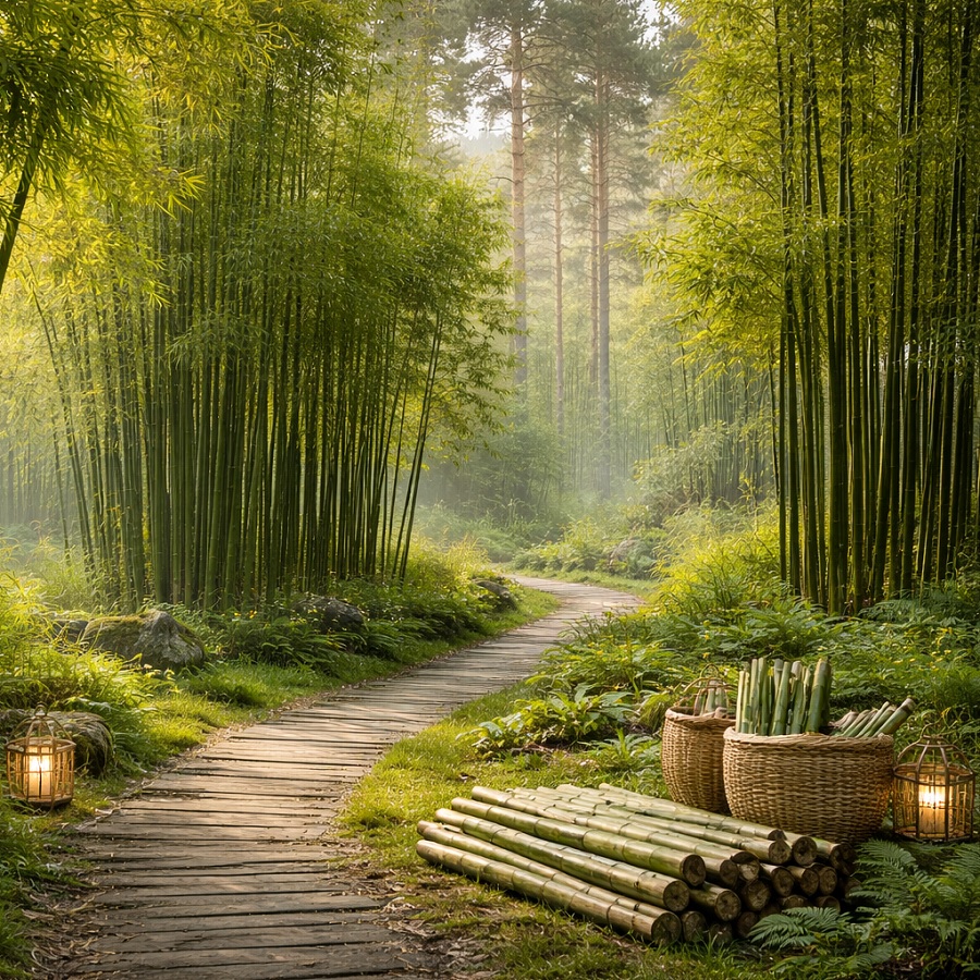 Bambus er en hurtigt voksende plante, der tilhører græsfamilien og er kendt for sin styrke, holdbarhed og miljøvenlighed. Det er et alsidigt materiale, der anvendes til forskellige formål, herunder byggeri, møbelproduktion, tekstiler, køkkenredskaber og dekorative genstande.