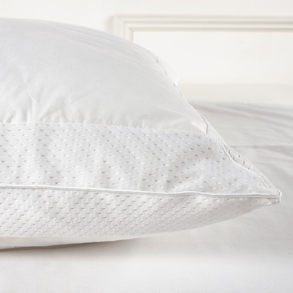 Puden er omgivet af et ekstra blødt bomuldsvår, der giver en luksuriøs fornemmelse og sikrer en behagelig overflade at hvile hovedet på.