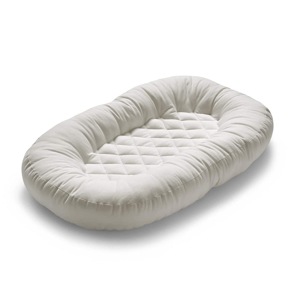 Babynestens madras er quiltet i små tern for at sikre en blød og behagelig overflade og samtidig isolere mod kulde nedefra. Den bløde struktur gør, at babynesten er ideel til at anvende på gulvet eller under et aktivitetsstativ, hvor barnet kan lege og udforske i tryghed.