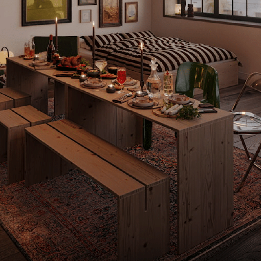 Join-In Dining Table er fremstillet af massivt, ubehandlet FSC-certificeret fyrretræ (FSC-C108366), hvilket giver dig frihed til selv at bestemme bordets finish. Det anbefales at behandle bordet før brug for at beskytte det mod daglig slitage og forlænge dets levetid. Dette er et bord, der tilpasser sig din hverdag – ærligt, funktionelt, og hvor hver detalje er valgt med omtanke.