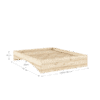 Orbit Sengerammen er tilgængelig i tre populære størrelser for at passe til dit behov: 140×200 cm, 160×200 cm og 180×200 cm. Den viste størrelse (140×200 cm) har en sengebredde på 144 cm, en længde på 205 cm og en højde på 35 cm, med en benhøjde på 18 cm og en maksimal bæreevne på 300 kg. Rammematerialet er fyrretræ i “100 Ubehandlet” rammefarve, hvilket giver dig friheden til selv at vælge finish og skaber en varm, naturlig base i dit soveværelse.