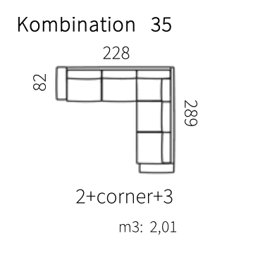 K364 Kombination 35/37 fra Scandinavian Upholstery er en rummelig og komfortabel hjørnesofa, der kombinerer et modul med 2 sæder, et hjørnemodul og 3 sæder. Sofaen måler 228 x 289 x 82 cm og fås både højre- og venstrevendt, så du kan vælge den variant, der passer bedst til dit rum.