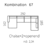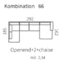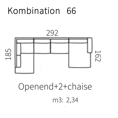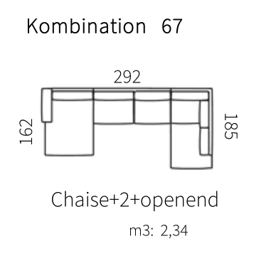 K364 Kombination 66/67 fra Scandinavian Upholstery er en fleksibel og rummelig sofa med chaise, 2-personers sæde og åbent modul. Med målene 292 x 162 x 185 cm fås sofaen i både højre- og venstrevendt version, så den kan tilpasses dit hjems layout.