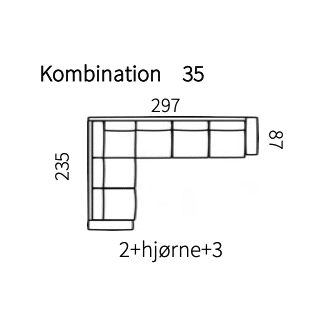 K605 Sofa Kombination 35/37 fra Scandinavian Upholstery er en rummelig og elegant hjørnesofa, der kombinerer komfort med funktionelt skandinavisk design. Med målene 297 x 235 x 87 cm giver denne sofa god plads til familien eller gæster med sin 2-personers og 3-personers sektion, forbundet via et praktisk hjørnemodul. Sofaen fås både i højre- og venstrevendt version, hvilket sikrer, at den passer perfekt ind i dit rum.