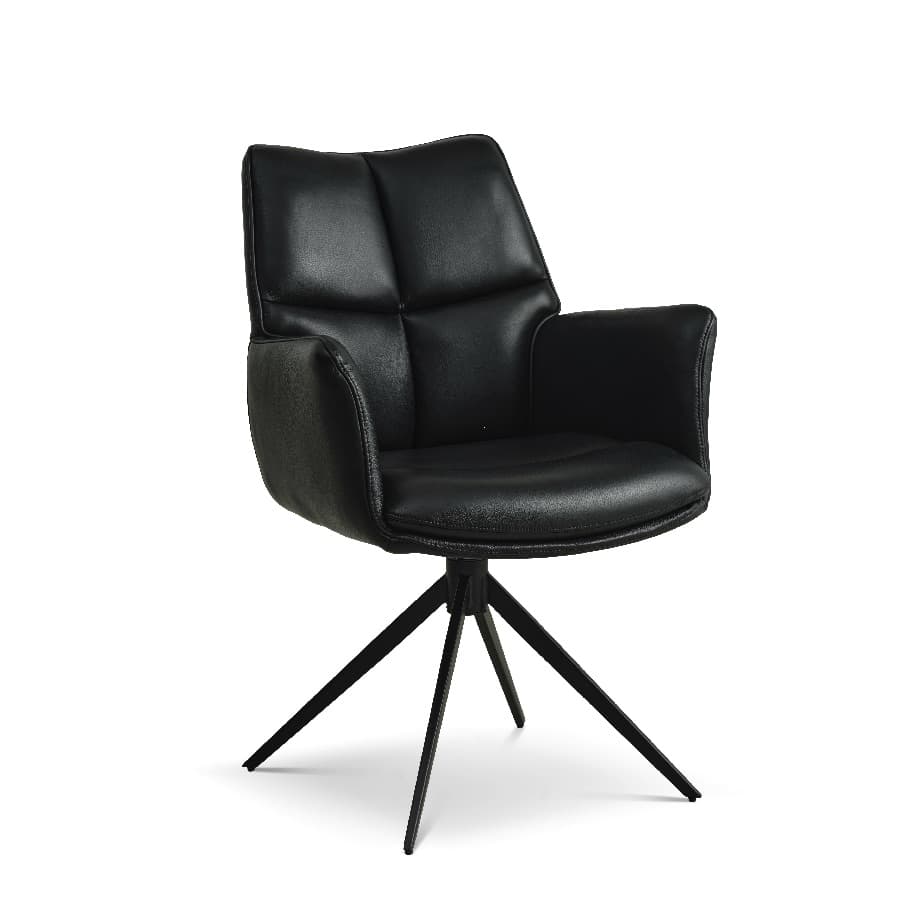 Lily spisebordsstol er designet med fokus på komfort og funktionalitet. Den er udstyret med et praktisk drejestel, som fås i sort, brun og metal, hvilket giver ekstra fleksibilitet og et moderne look. Kombinationen af ægte læder, armlæn og drejestel skaber en stol, der både er elegant og yderst behagelig.