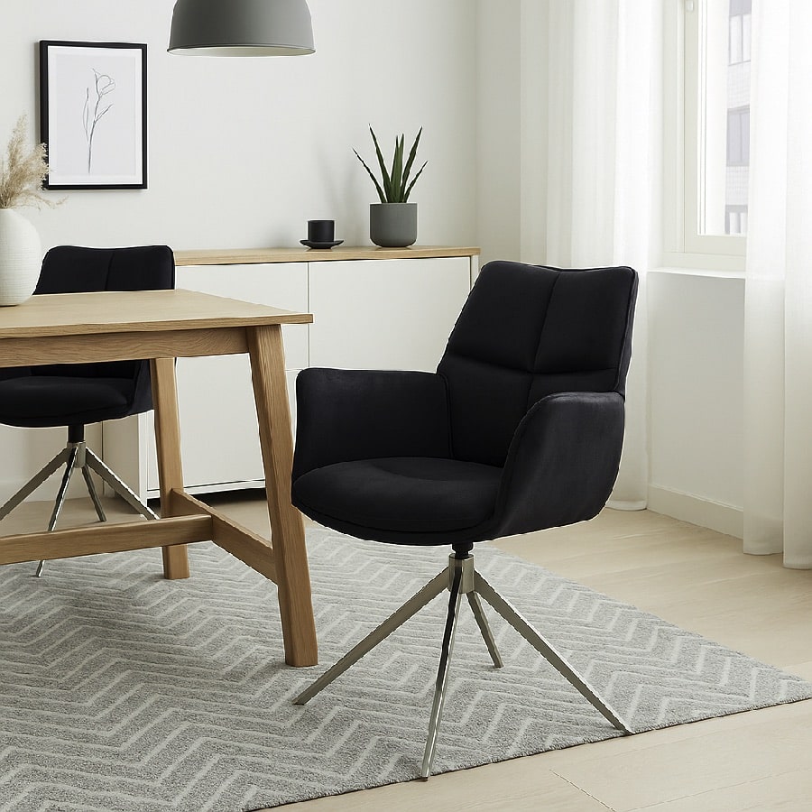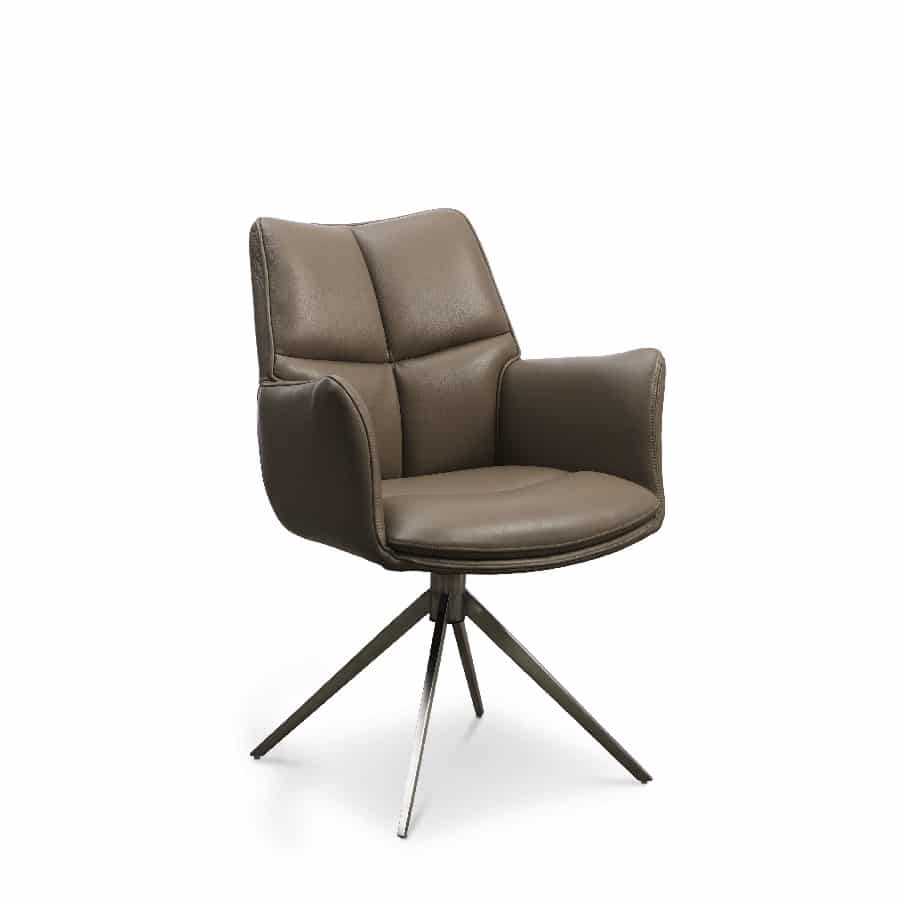 Lily spisebordsstol i ægte læder med armlæn og drejestel hos Uniquebeds er det perfekte valg for dig, der ønsker et eksklusivt, komfortabelt og holdbart møbel til spisestuen.