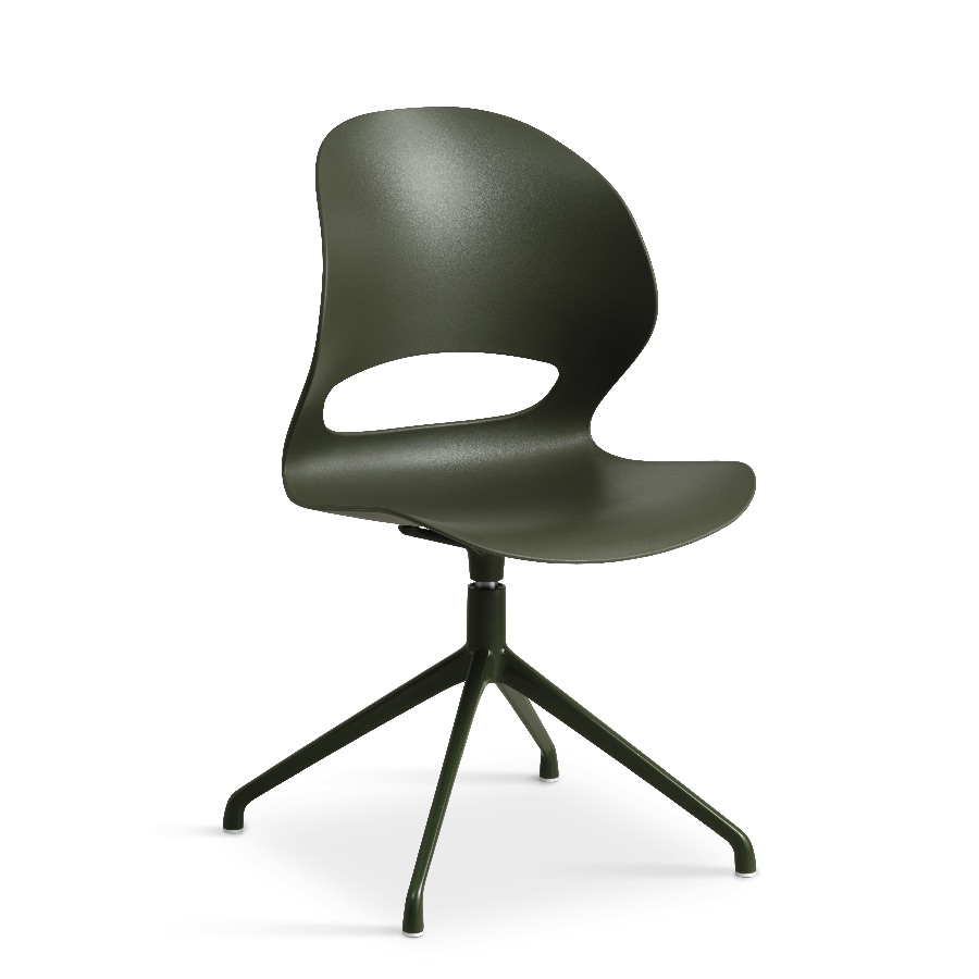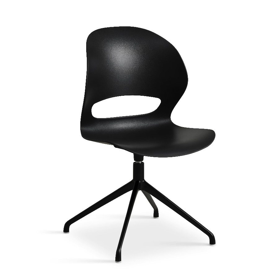 Du kan vælge mellem stel i sort eller stel i samme farve som resten af stolen. Det sorte stel giver et mere grafisk og markant udtryk, mens det farvetilpassede stel skaber en rolig og sammenhængende helhed. Drejestellet bidrager ikke kun til et moderne look, men også til øget funktionalitet, da det gør stolen mere fleksibel og komfortabel i brug.