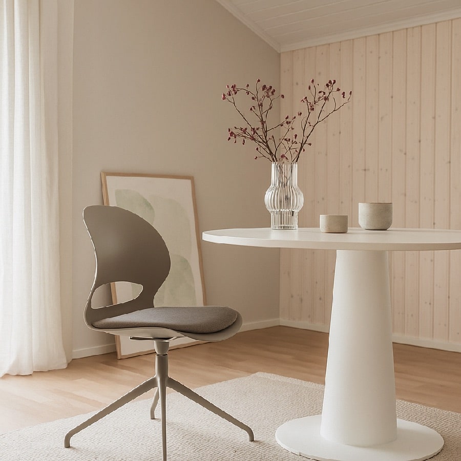 Linea fås i de samme flotte farver som resten af serien, så du kan vælge den nuance, der passer bedst til din indretning. Sædets polstring giver en blød kontrast til det glatte plastiksæde, og du kan vælge drejestel i samme farve som stolen for et harmonisk helhedsindtryk – eller i sort for et mere moderne udtryk. Drejefunktionen gør stolen ekstra fleksibel og bekvem i daglig brug.