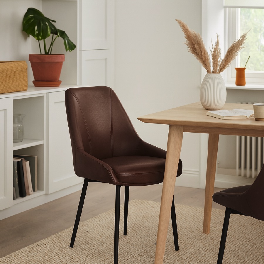 Stockholm Spisebordsstole i Lysebrunt PU læder med sorte stål ben fra House Nordic