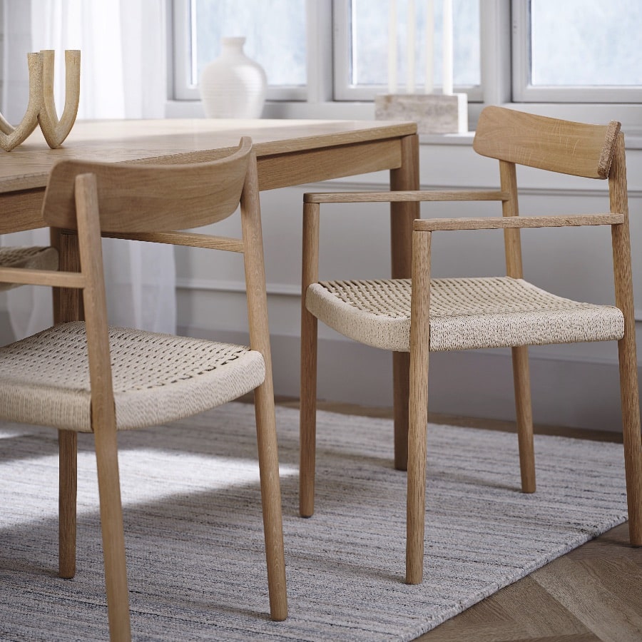 Sydney spisebordsstol med armlæn er ideel til dig, der ønsker en stilfuld, funktionel og komfortabel stol, der holder i mange år, og som samtidig tilføjer varme og karakter til spisestuen.
