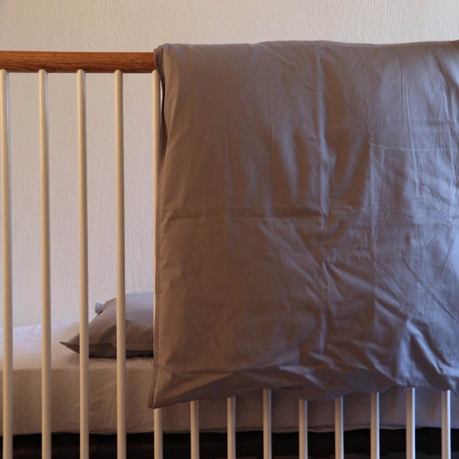 Omhu Percale sengesæt til baby eller junior er skabt med omtanke og kærlighed til de mindste. Sættet er fremstillet i 100 % økologisk bomuld med en klassisk, tæt percalevævning (TC200), der sikrer en blød, åndbar og slidstærk kvalitet. Den lyse grå farve og det enkle design gør sengesættet velegnet til både drenge og piger og giver en let og harmonisk stemning i børneværelset.